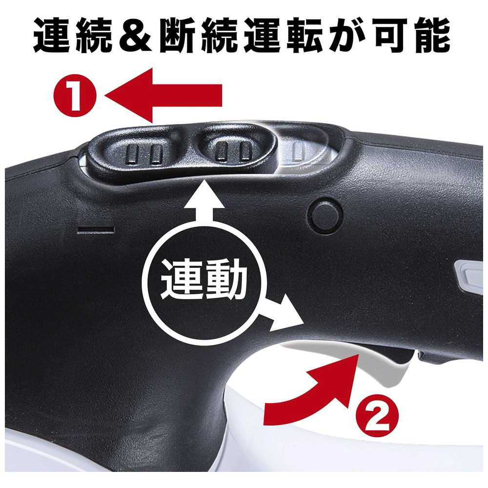 こまめにON/OFFしたい時はトリガスイッチ、連続運転したい時はスライドスイッチと使い分けが可能。