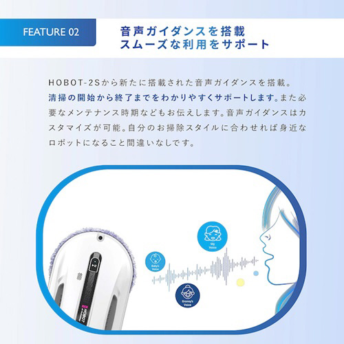 HOBOT-2Sから新たに搭載された音声ガイダンスを搭載。
