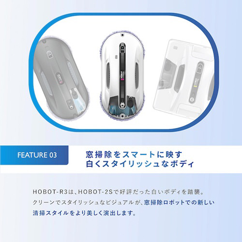 HOBOT-R3は、HOBOT-2Sで好評だった白いボディを踏襲。