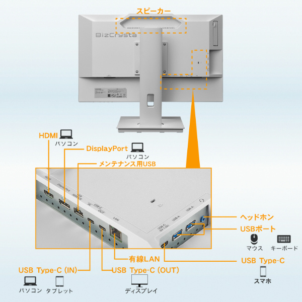 「USB Type-C搭載&フリースタイルスタンド採用23.8型ワイド液晶ディスプレイ(BizCrysta)」