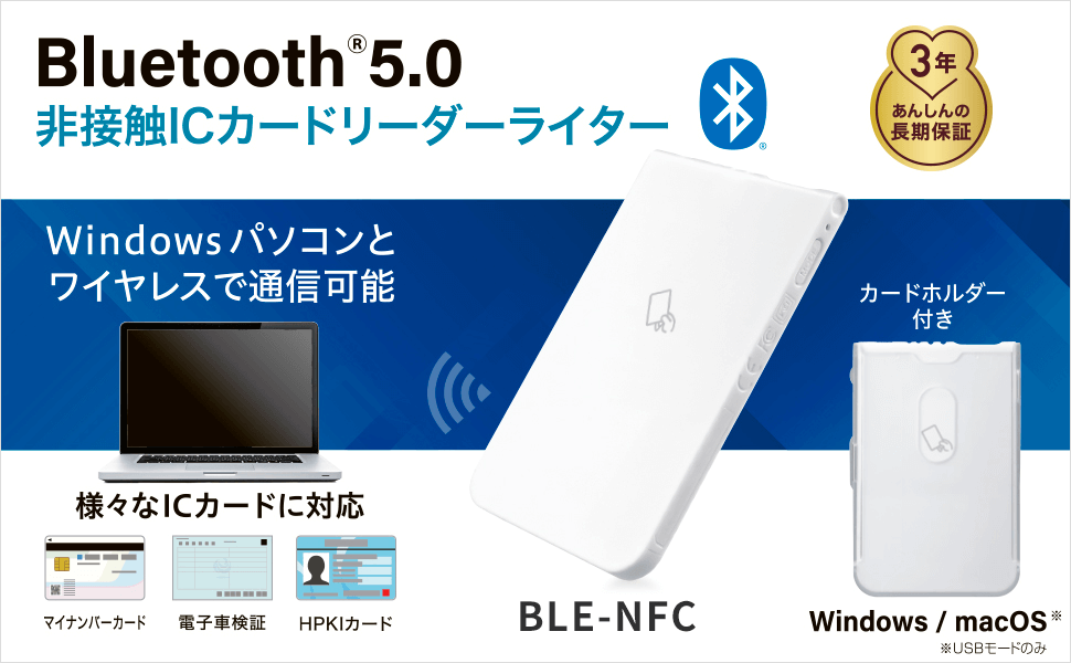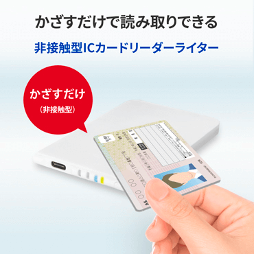 本商品はマイナンバーカードをはじめ、HPKIカード(医師資格証・薬剤師資格証)、税理士用電子証明書、IC運転免許証、e-Passport、電子車検証の読み取りができることを確認しています。マイナンバーカード情報が必要な確定申告(e-Tax、eLTAX)や各種行政手続きでのご利用はもちろん、各種認証機器でのカードリーダーとしてもご利用いただけます。