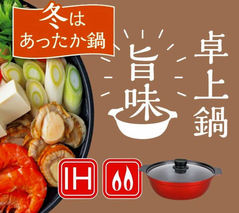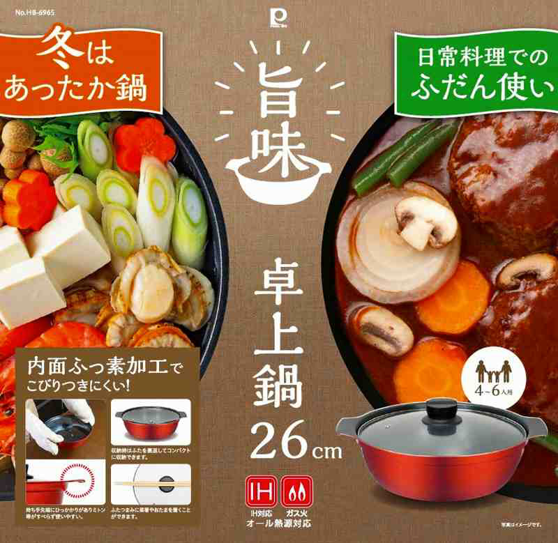 旨味 ふっ素加工IH対応ガラス蓋付 卓上鍋26cm HB-6965 [IH対応]