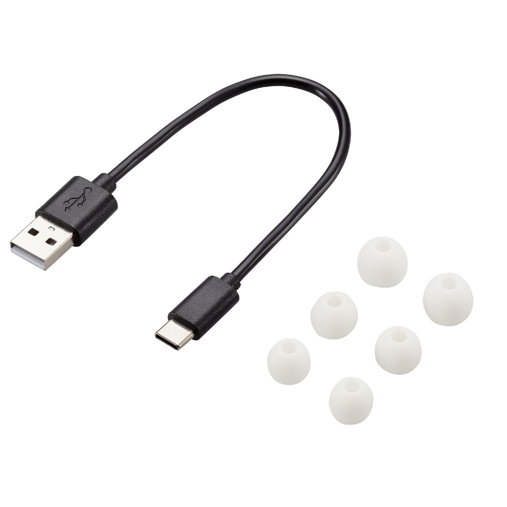 イヤーキャップはS/M/Lの3サイズ。耳の大きさや形状に合わせて最適なサイズが選べて、落下の不安を軽減します。