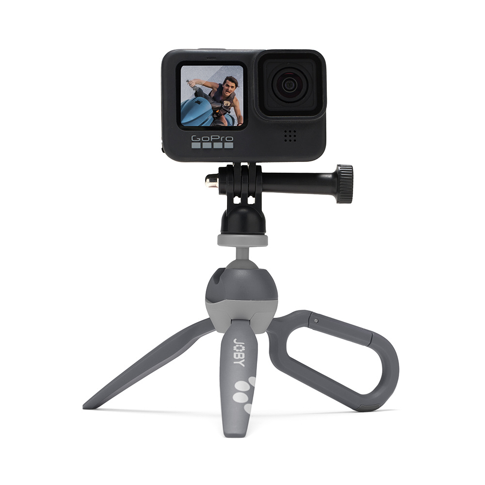 ボールヘッド先端のアタッチメントは1/4ネジになっており、コンパクトカメラだけでなくビデオライトやマイクなども装着できます。また、GoPro シリーズをはじめとするアクションカメラを固定できるアダプターが付属しています。
