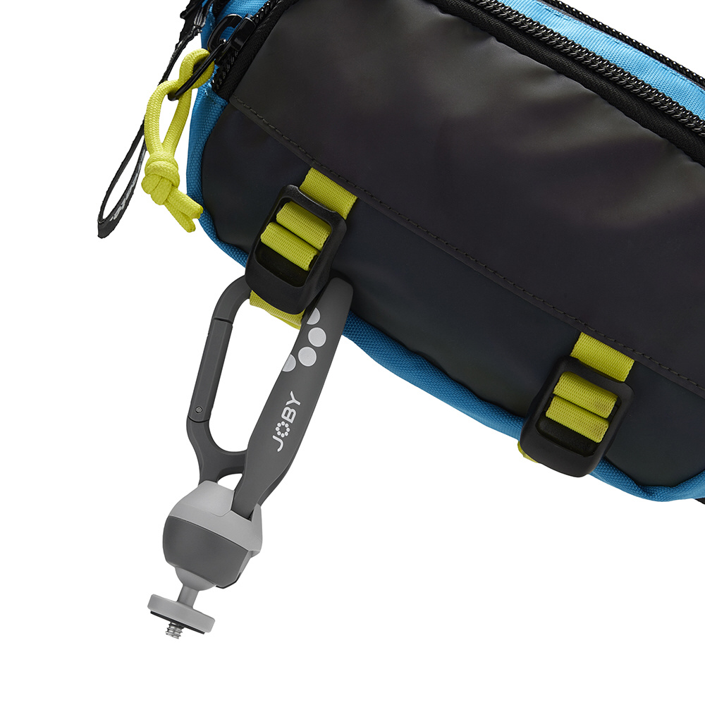 人気の ハンディーポッド 2 のデザインを原型とした、ハンドグリップとしても使えるポケットサイズ三脚です。脚の一本がカラビナになっており、バックパックのストラップやベルトループなどに吊り下げることができます。