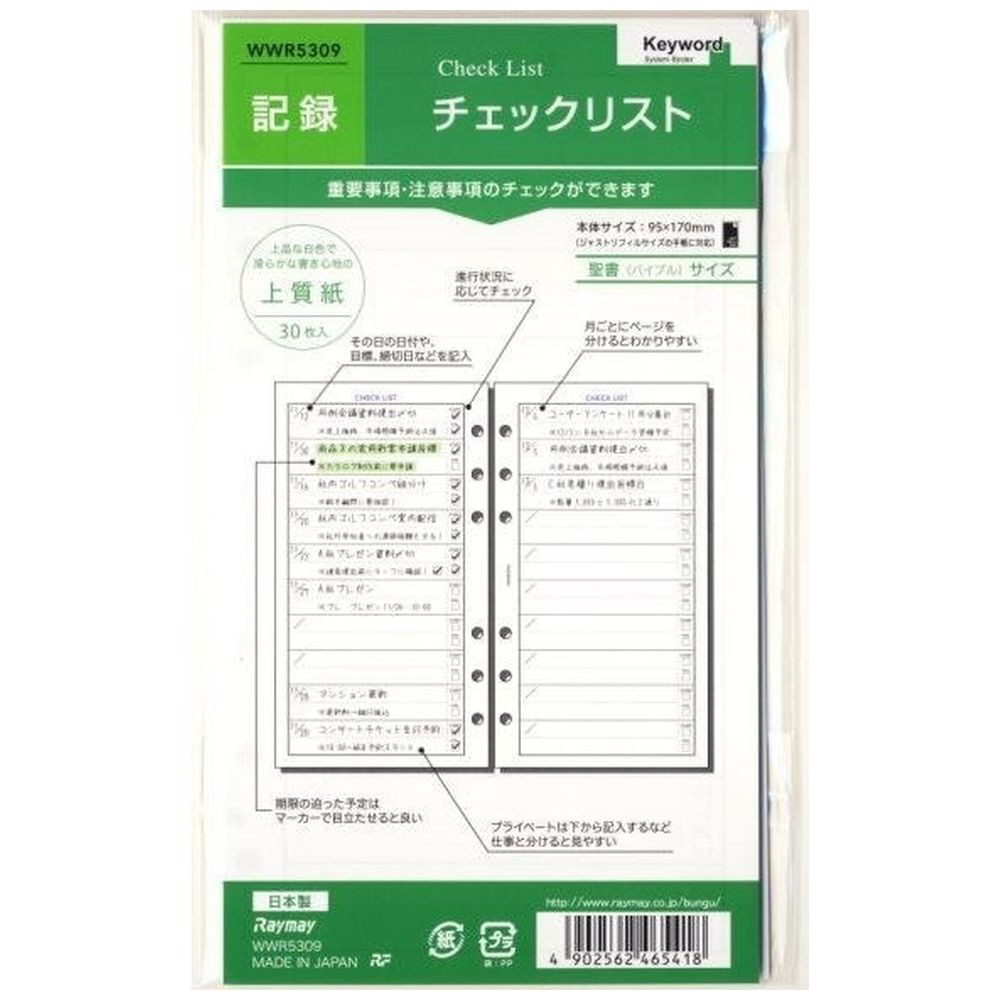 | 商品名 | システム手帳 リフィル(聖書) Keyword(キーワード) チェックリスト WWR5309 |