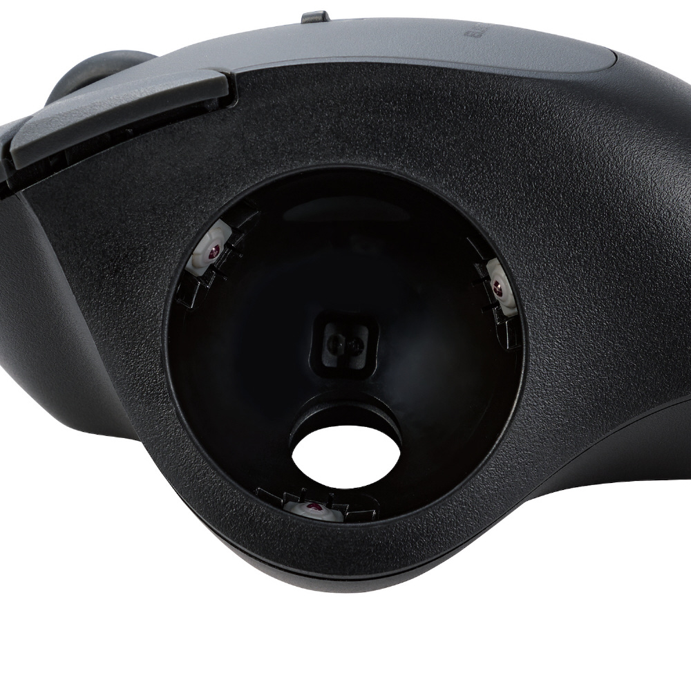 楽な姿勢で操作できるエルゴノミクス形状と広範囲かつ繊細に動かせる36mm大型ボールを採用。親指操作タイプの握らないトラックボール“IST”。人工ルビー支持の無線2.4GHzモデル。
