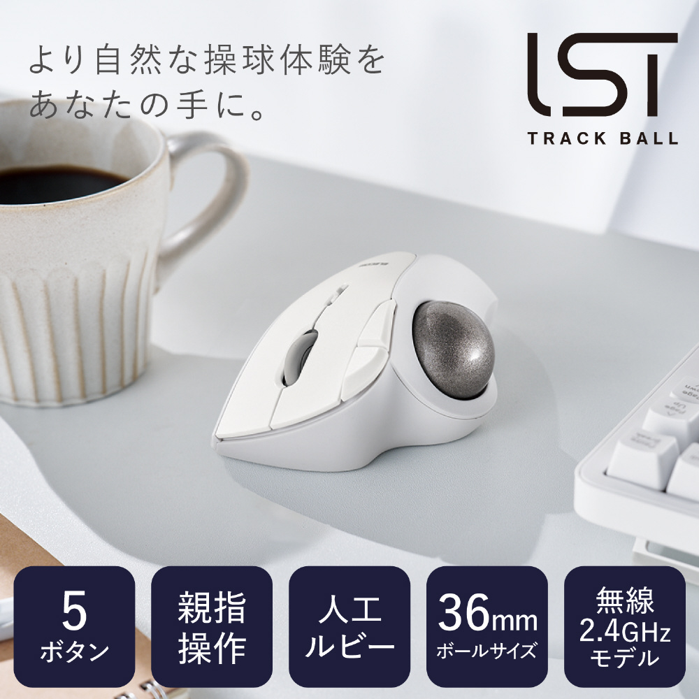 マウス トラックボール「IST」人工ルビーモデル(Chrome/Mac/Windows11対応) ホワイト M-IT10DRWH [IR LED /無線(ワイヤレス) /5ボタン /USB]