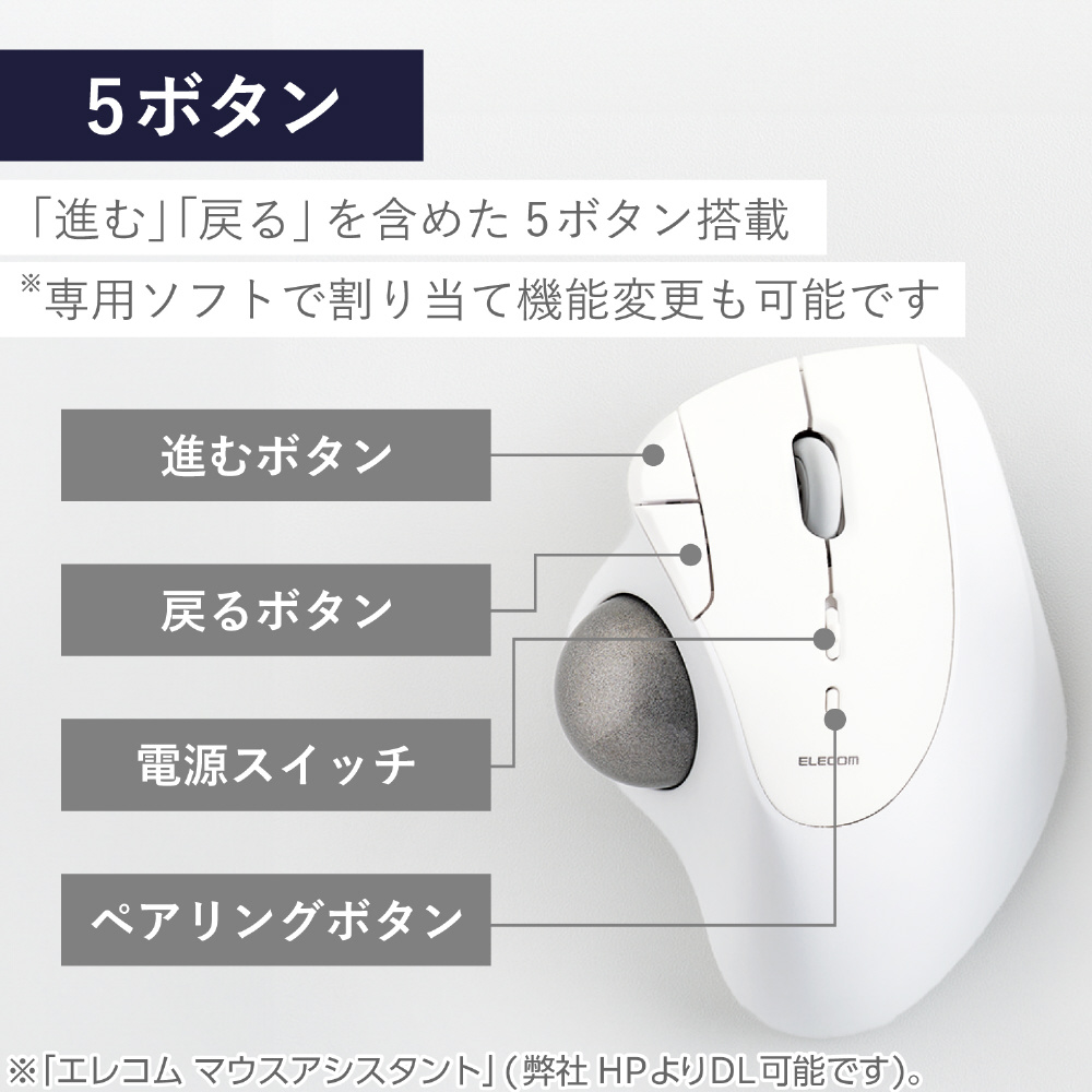 マウス トラックボール IST ベアリングモデル(Chrome/Android/iPadOS/iOS/Mac/Windows11対応) ホワイト M-IT11BRWH [IR LED /無線(ワイヤレス) /5ボタン /Bluetooth]