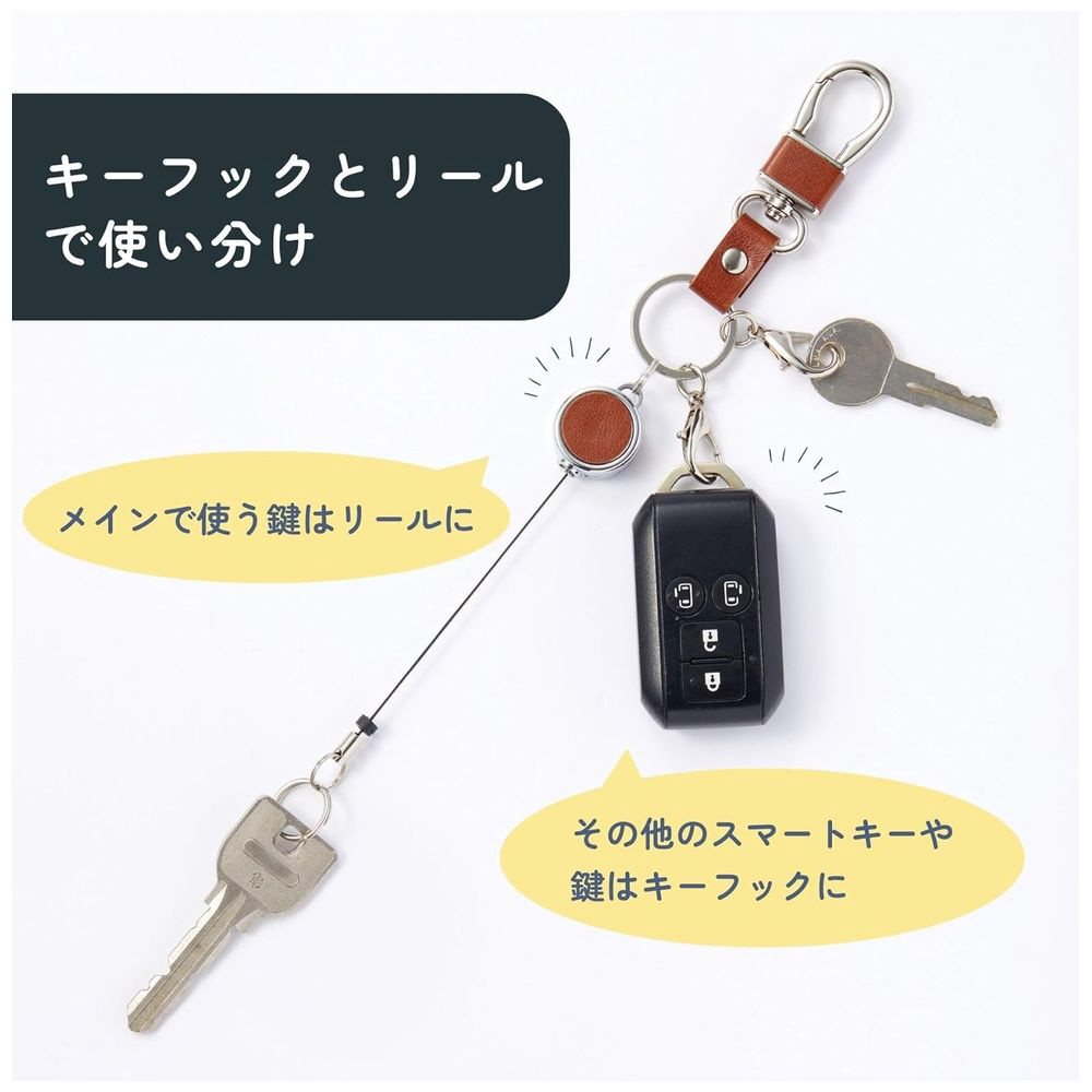 メインで使う鍵をリールに付けておき、他のスマートキーや鍵をキーフックに付けておける。