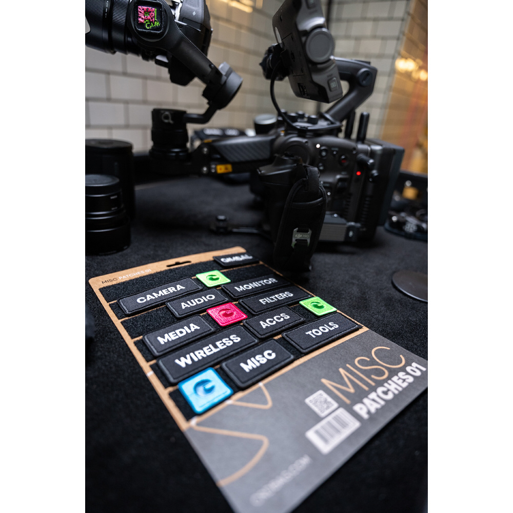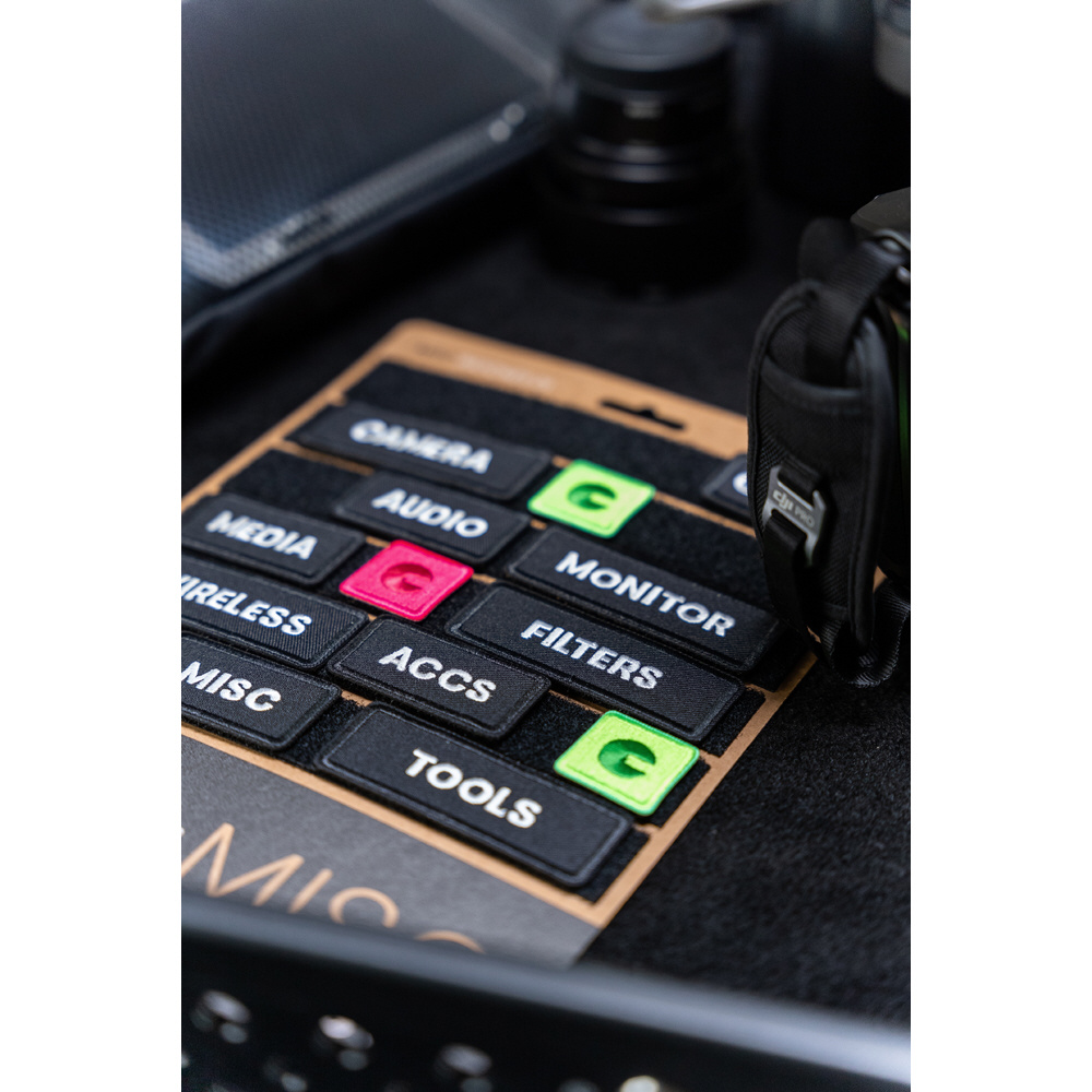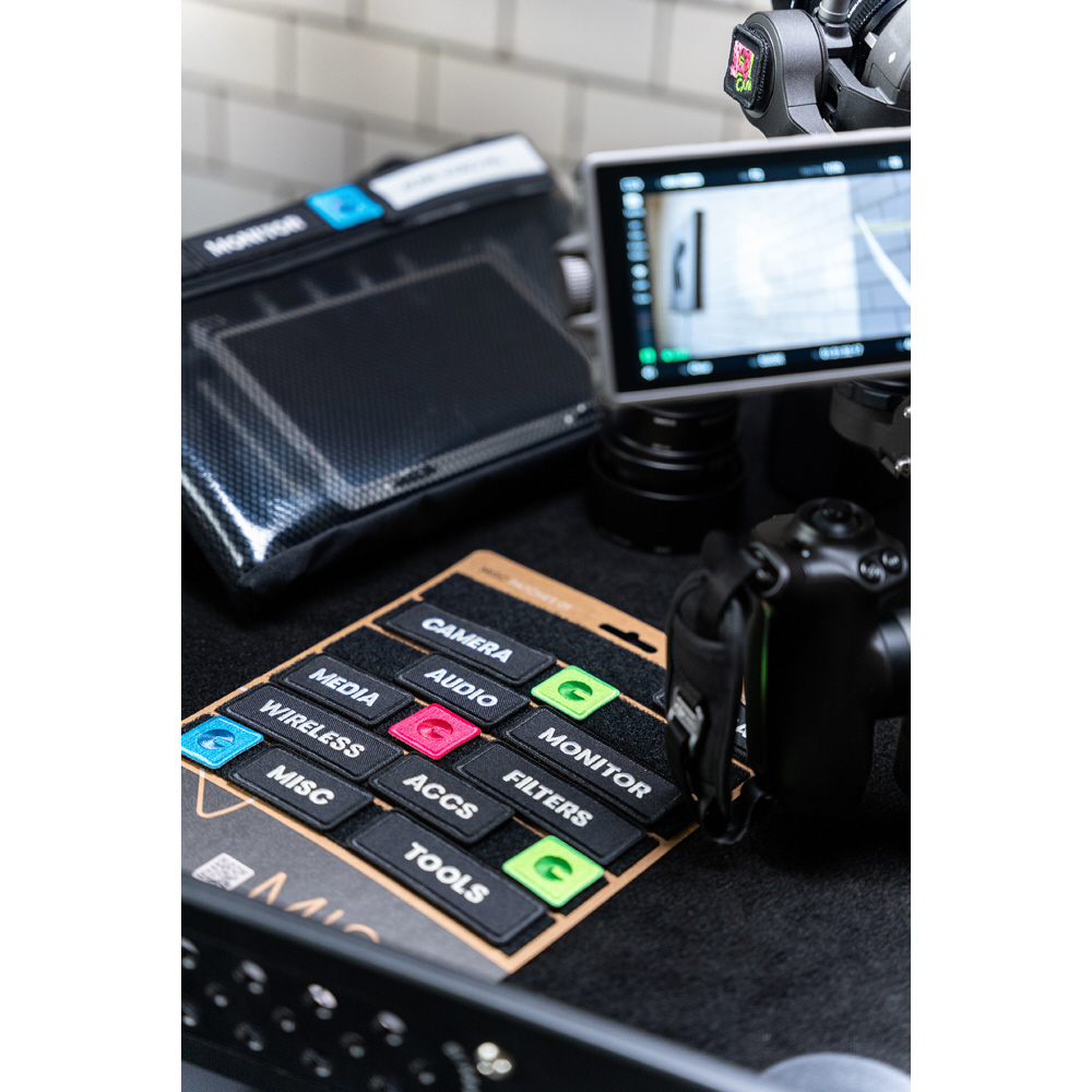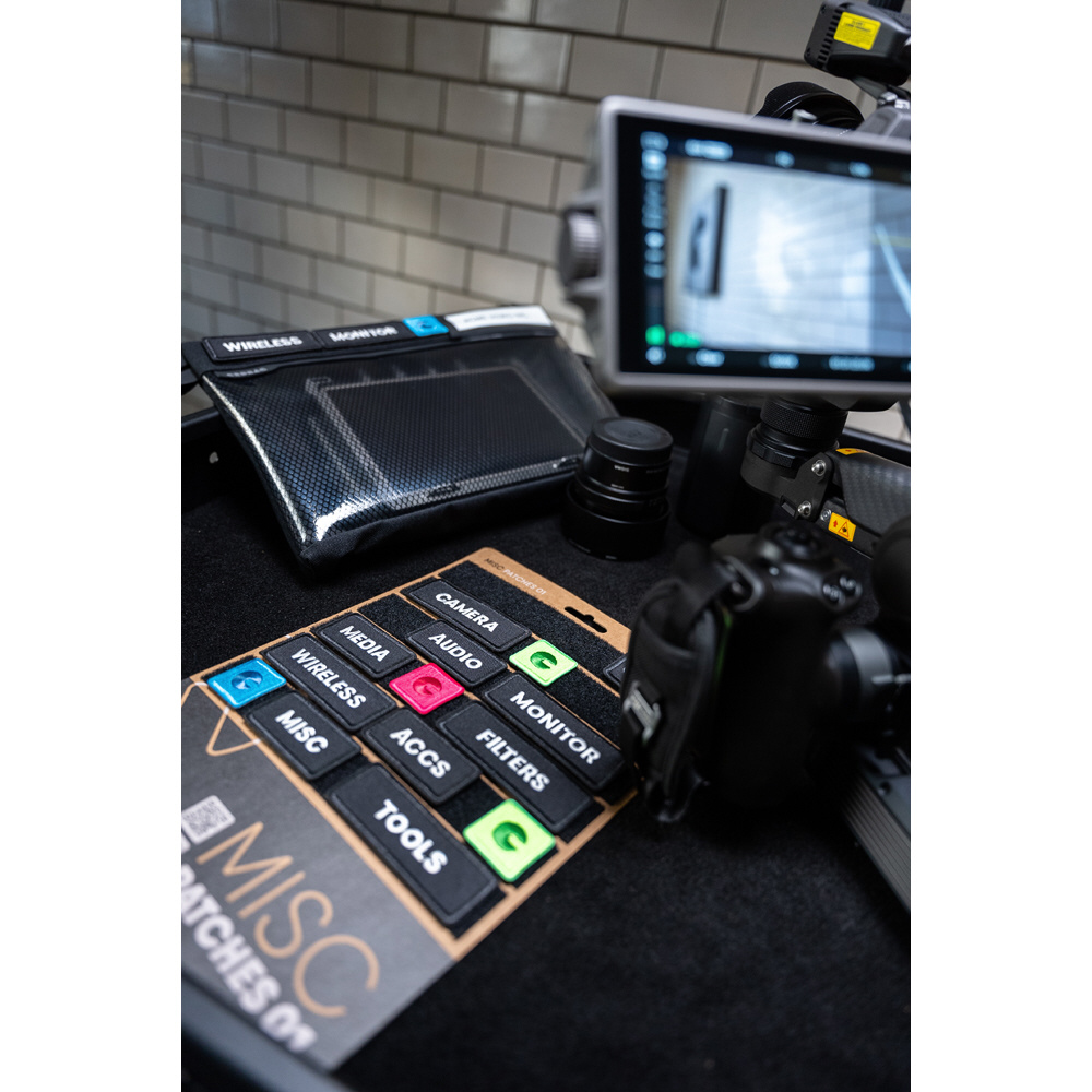 コードポーチの面ファスナー部分に貼り付け、ワークフローに沿った整理や色分けをするためのパッチです。