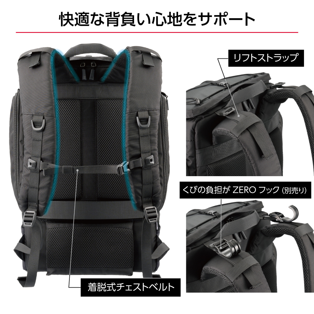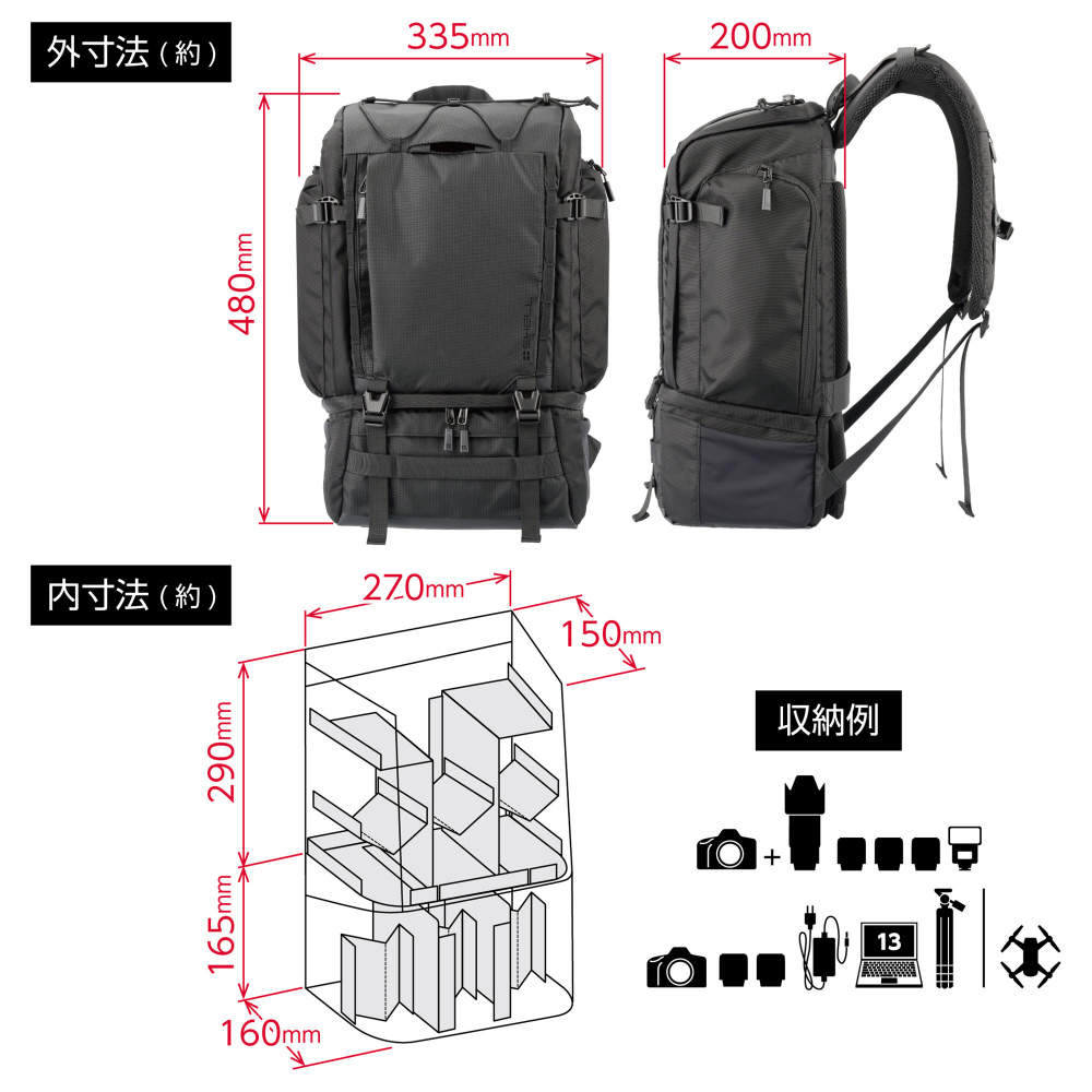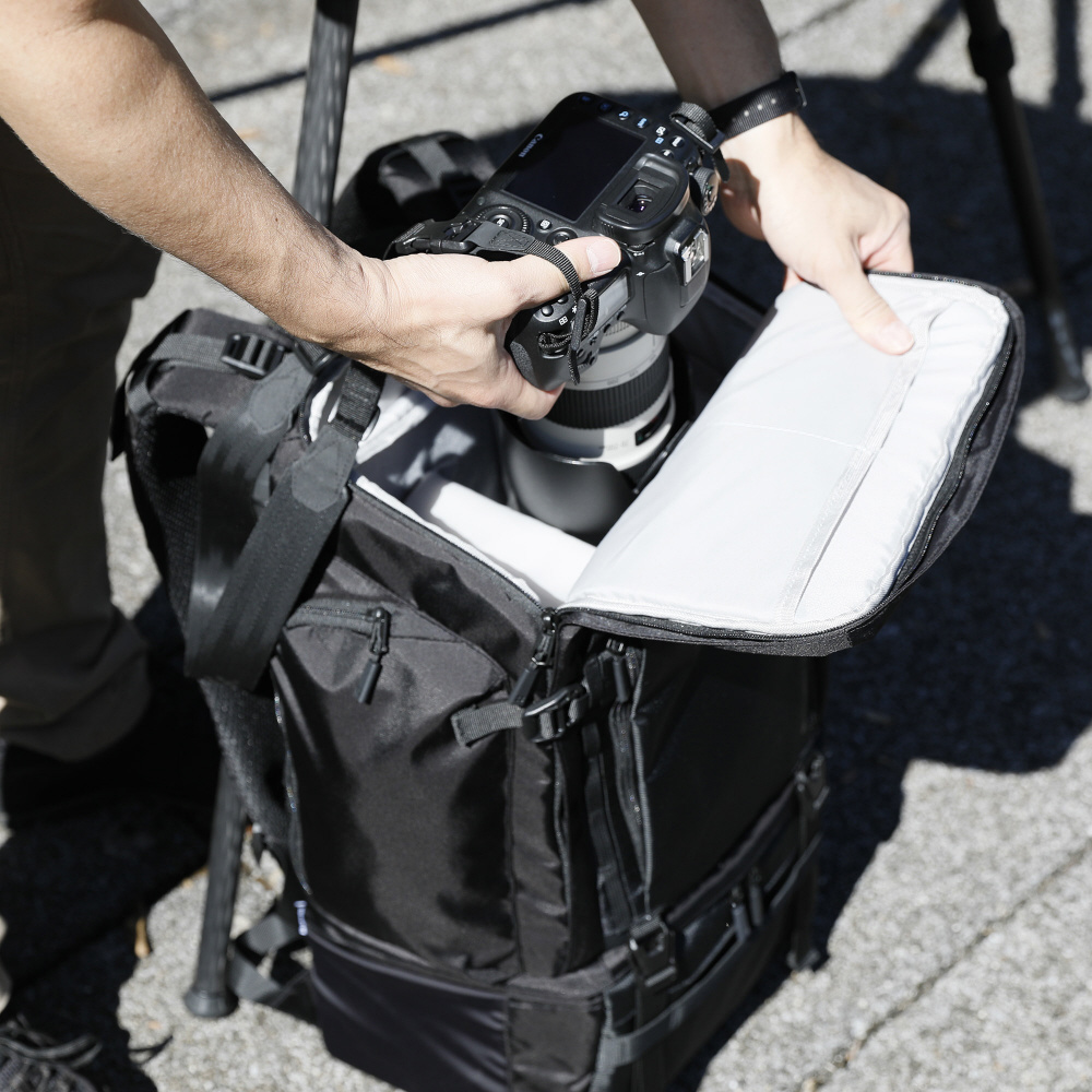 超望遠レンズも持ち運べる、上下2気室の大容量かつ軽量設計のバックパックタイプのカメラバッグ
