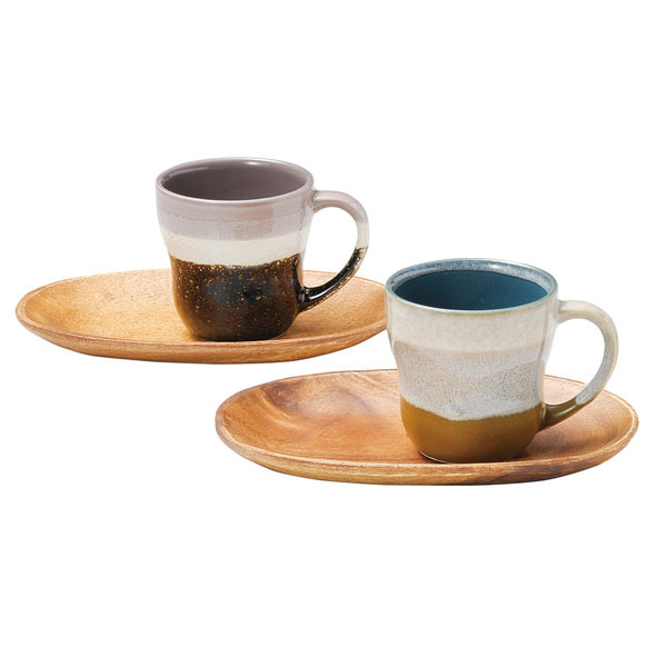 商品名 グレイズワークス ペア マグカップ&木製トレー セット