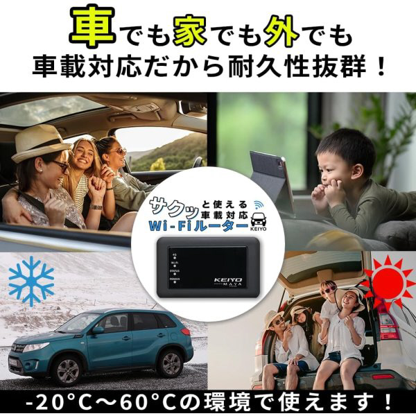 いつでもどこでも車内を快適なWi-Fi環境にできる。 車載対応クラウドSIM型Wi-Fiルーター