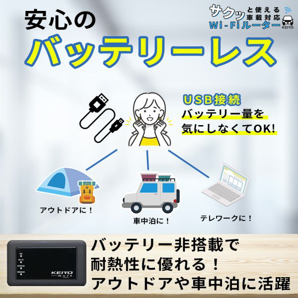・バッテリーレス耐熱性に優れています。本体が熱くならないので車載でも安心!