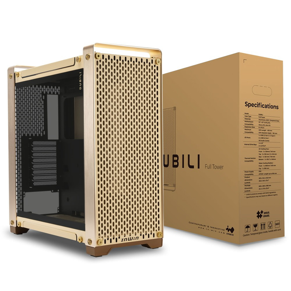 【モジュラー部品版】PCケース [ATX /Micro ATX /Extended ATX /Mini-ITX] DUBILI シャンパン・ゴールド IW-CS-DUBILIMOD-GLD (Modular Parts)