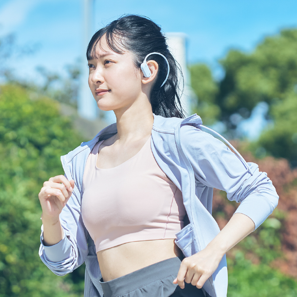 ランニングなどのアクティブシーンでも快適に、常に良い音を楽しむことができるオープンイヤー型のワイヤレスイヤホン。