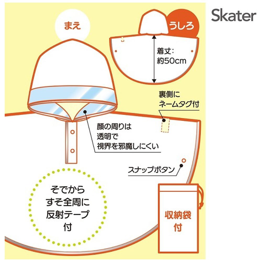 | 仕様2 | 【商品サイズ(約)】 ※適応身長:80〜100cm 着丈:50cm 幅:90cm 袋サイズ:横140×縦245mm 本体:77g 袋:6g |