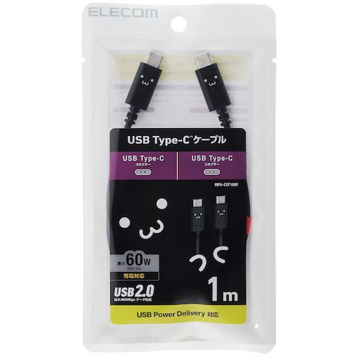 USB Type-C to USB Type-Cケーブル/USB Power Delivery対応/顔ツキタイプ/1.0m/クロチャン
