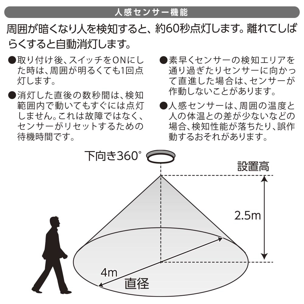 ■ 人感センサー検知範囲:2.5mの高さで直径約4m