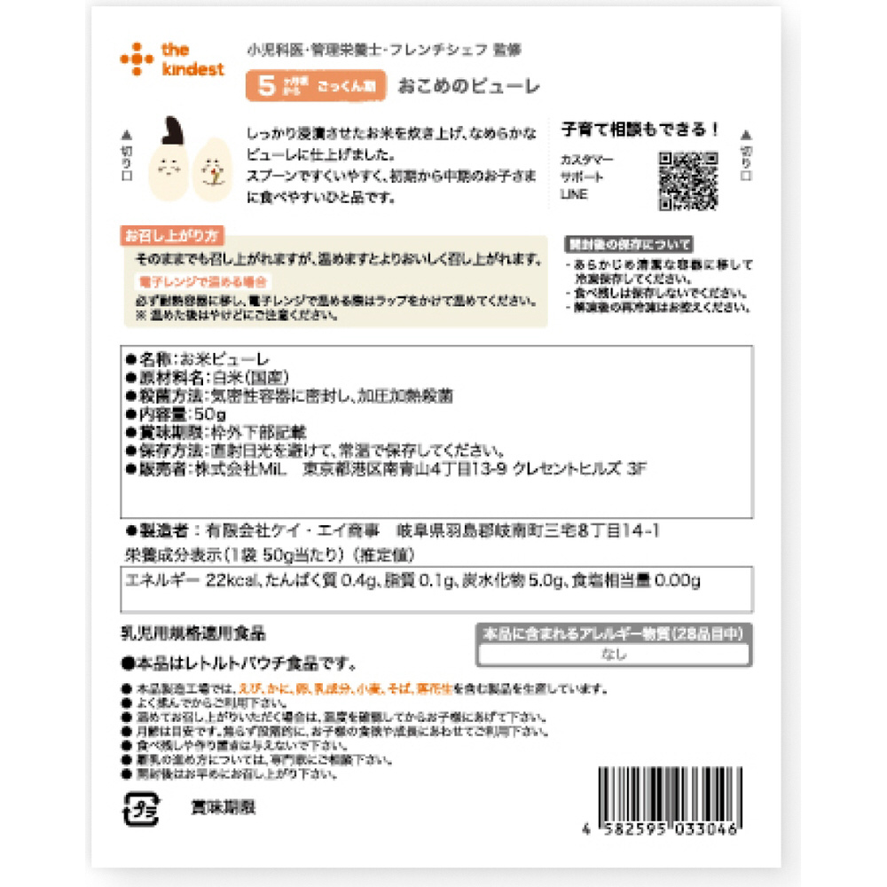 | 商品名 | the kindest(カインデスト)おこめのピューレ 50g〔対象月齢5か月〜〕 |