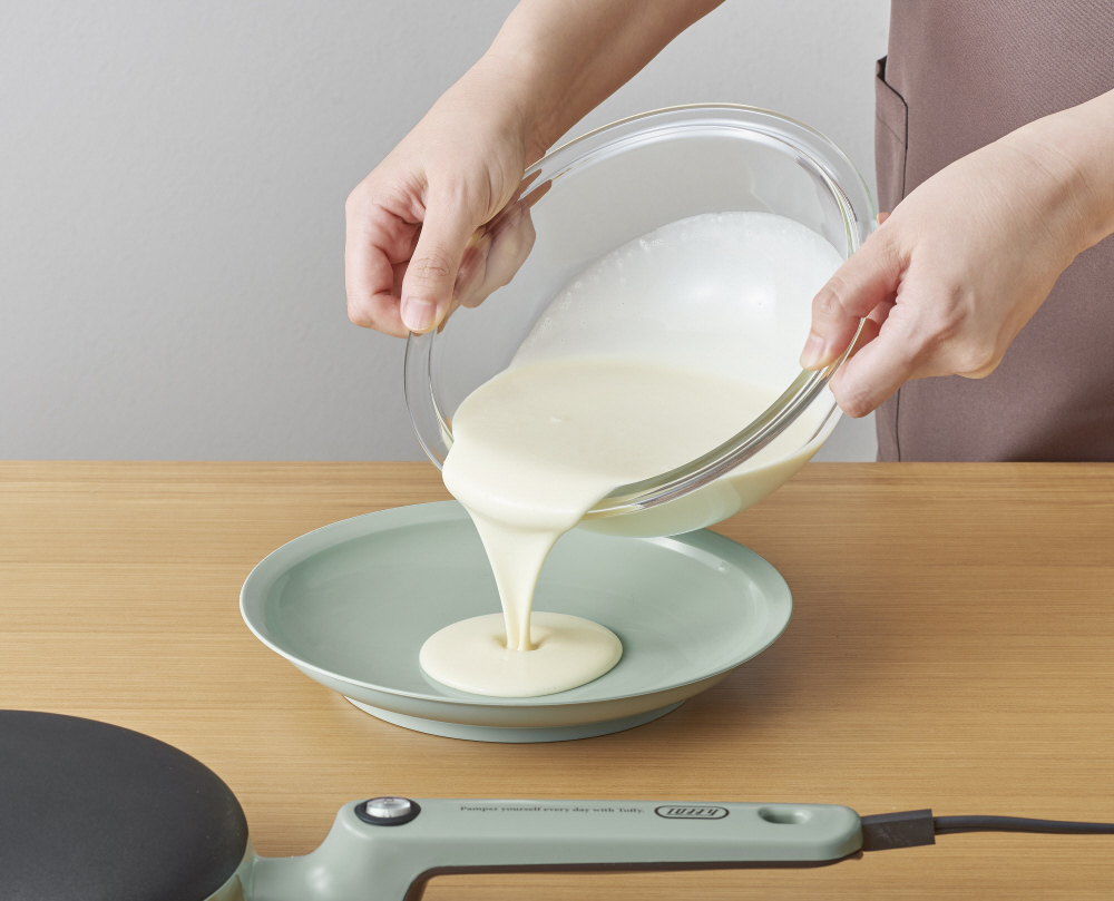 手軽に本格クレープ!薄く均一な生地が簡単に作れ、スイーツから食事系までアレンジ自在です。