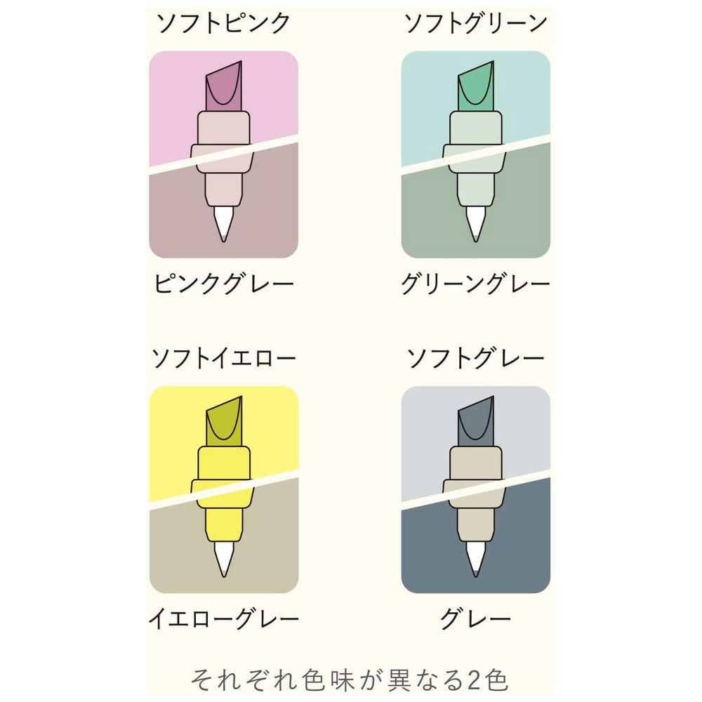 ■太側はチカチカしにくいインク色を採用しているので、文字の上からのマーキングに適しており、細側はグレー色の極細ペンで、ちょっとした情報のメモに適しています。