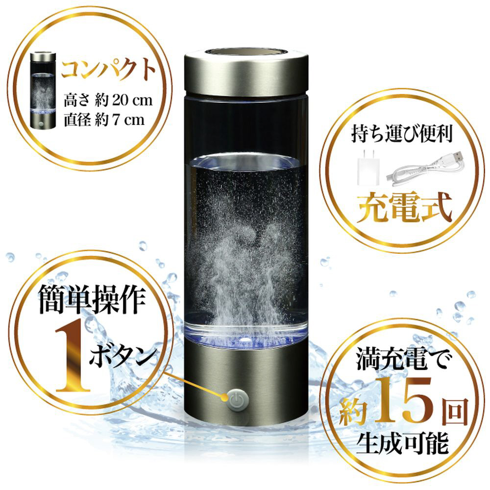 持ち運びに便利なコードレスの充電型コンパクト水素水生成器です。