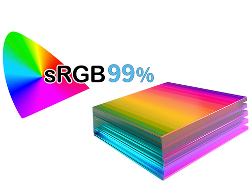最大輝度300cd/m2の液晶パネルはsRGB99%の広色域に対応し写真や動画編集などの作業にも最適です。