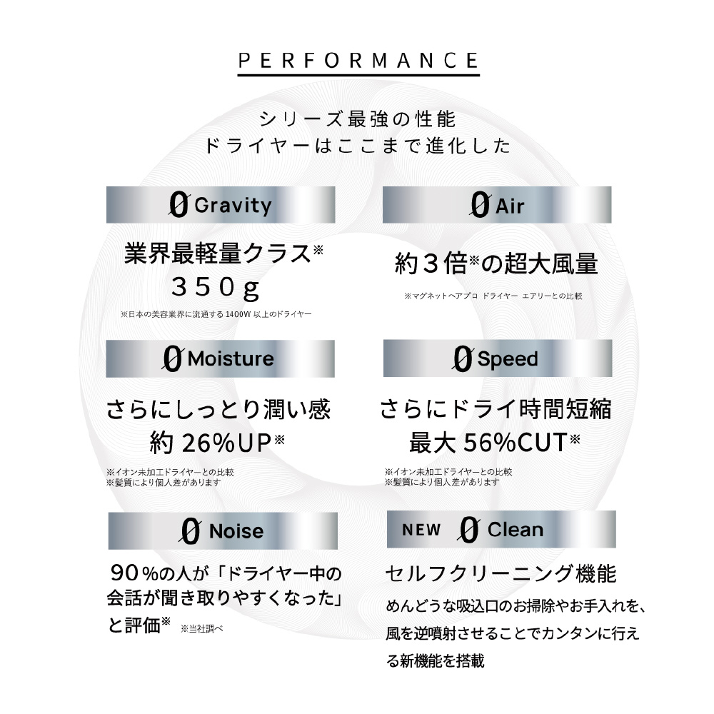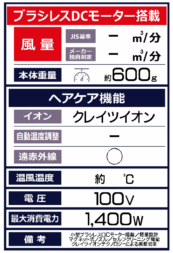 セルフクリーニングモード搭載となり、リニューアル!長時間の使用でも疲れにくい軽量設計。髪質や毛髪状態に合わせてドライできる5段階の温度可変式機能。