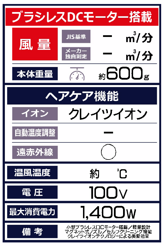 セルフクリーニングモード搭載となり、リニューアル!長時間の使用でも疲れにくい軽量設計。髪質や毛髪状態に合わせてドライできる5段階の温度可変式機能。