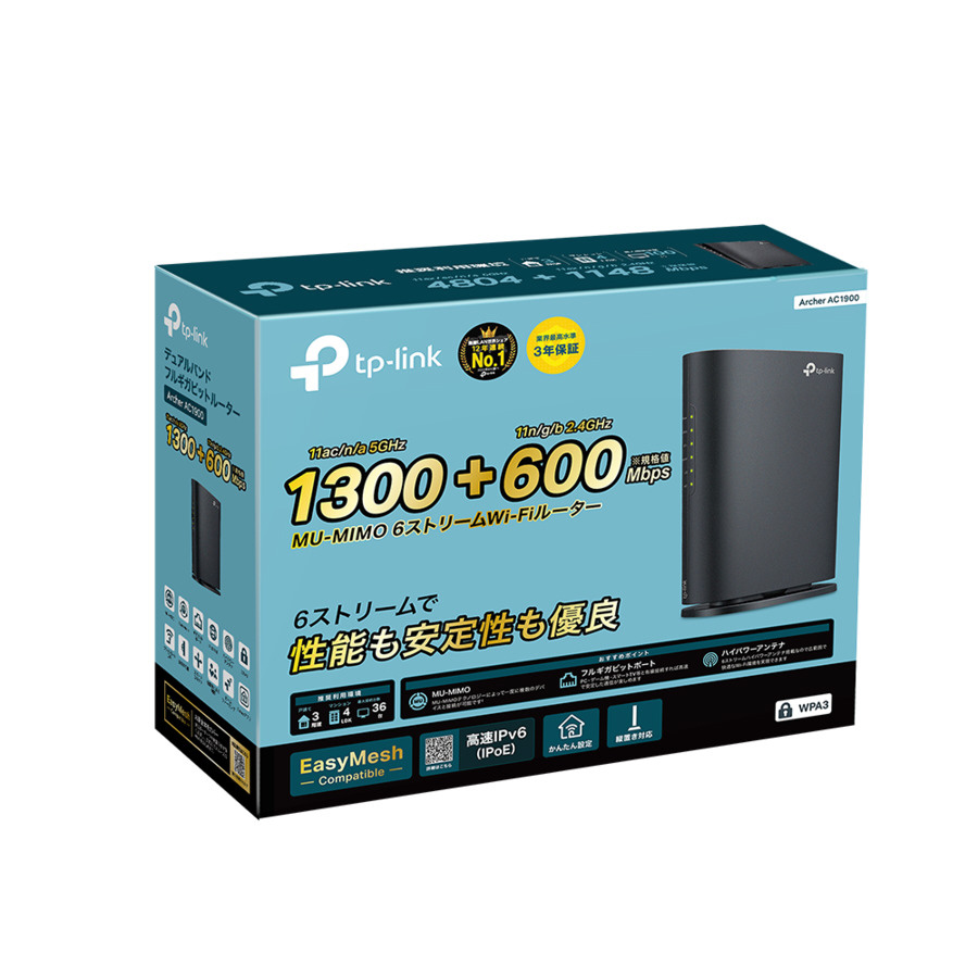 | 商品名 | Wi-Fiルーター 1300+600Mbps Archer AC1900 [Wi-Fi 5(ac) /IPv6対応] |