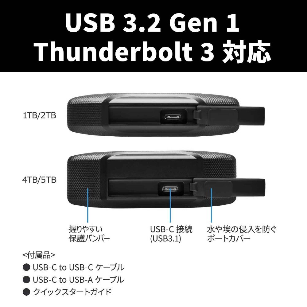 「堅牢で軽量 バンパー付USB 3.2 Gen1対応ポータブルハードディス」