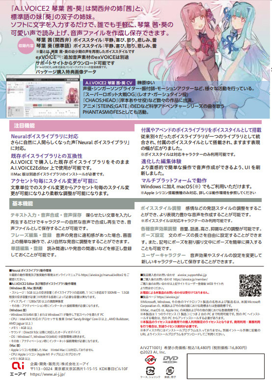 A.I.VOICE2 琴葉 茜・葵 パッケージ版 [Win・Mac用] 【sof001】