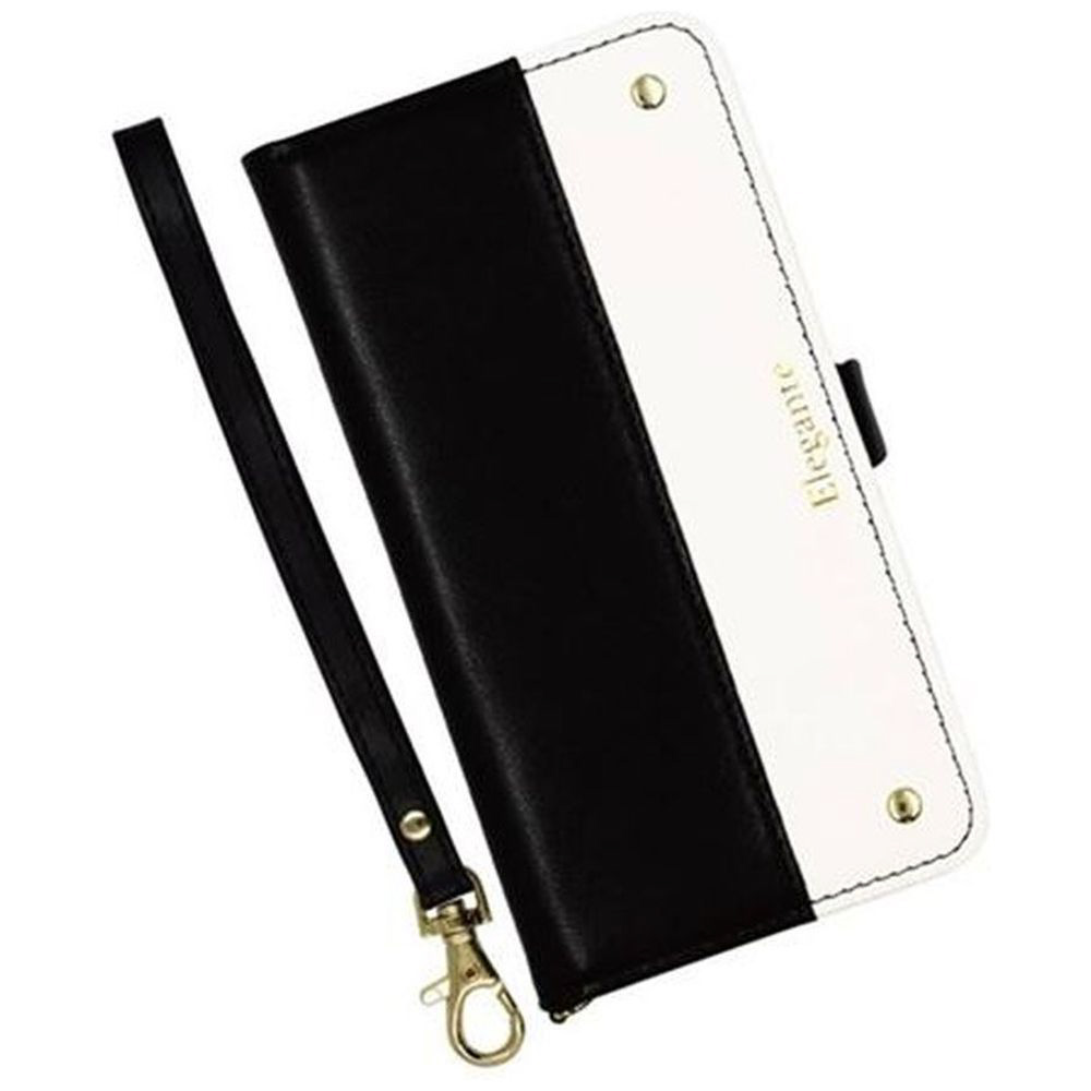 らくらくスマートフォン me(F-01L/F-42A) 手帳型ツートンケース ストラッ Elegante ブラック・ホワイト EL-RSME208BW