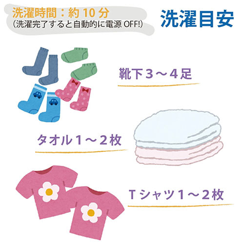 ●洗濯目安 : 靴下3〜4足、タオル1〜2枚、Tシャツ1〜2枚