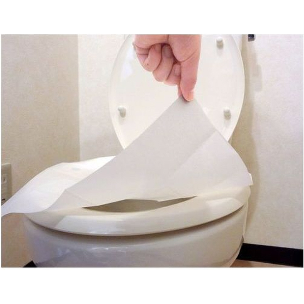 外出先などの洋式トイレで使用する携帯用の便座シートです。便座にパッと広げて、サッと敷くだけでおしりが便座に触れることなくトイレができます。使用後はそのままトイレに流せます。