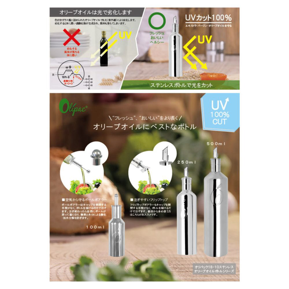 オリパック 18-10ステンレス オリーブオイルボトル 250ml OLIPACL250