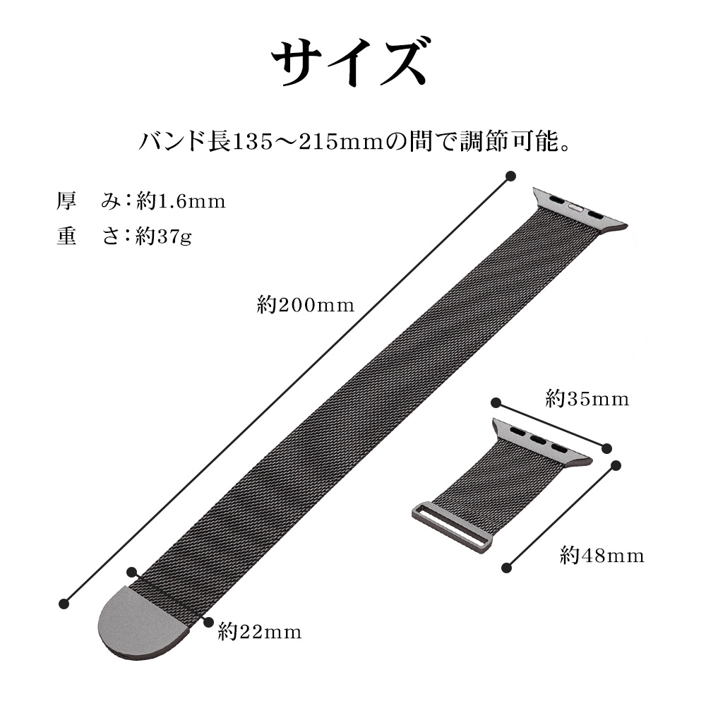 | 商品名 | Apple Watch用ベルト ステンレスメッシュ BK (42/44/45/49mm) ブラック RBLAW4406BK |