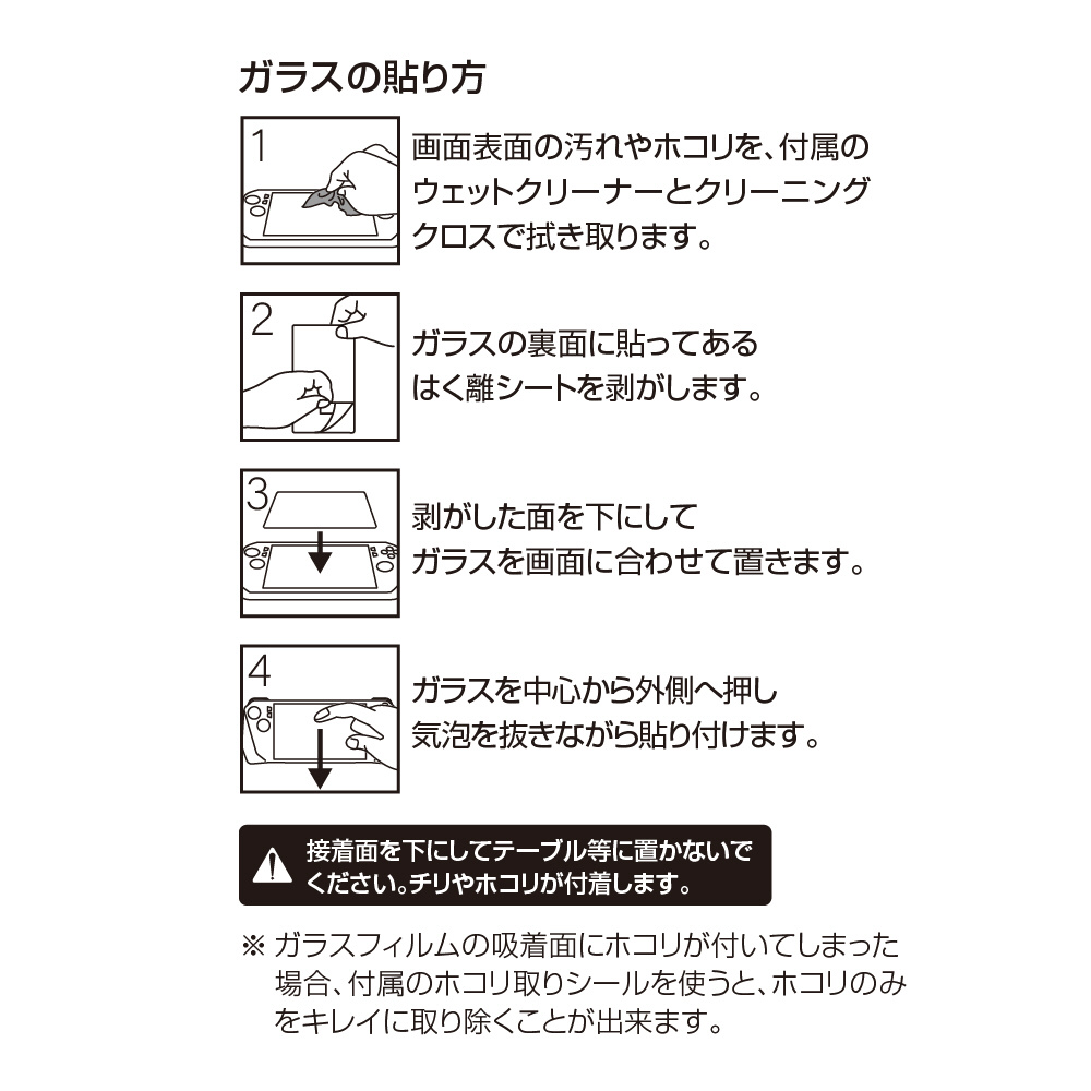 | 仕様1 | [ガラスフィルム寸法]W165×H106mm [厚み]0.33mm [重量]約18g [材質]AGCガラス(表面)、シリコン樹脂(粘着面) [入り数]1枚入り |