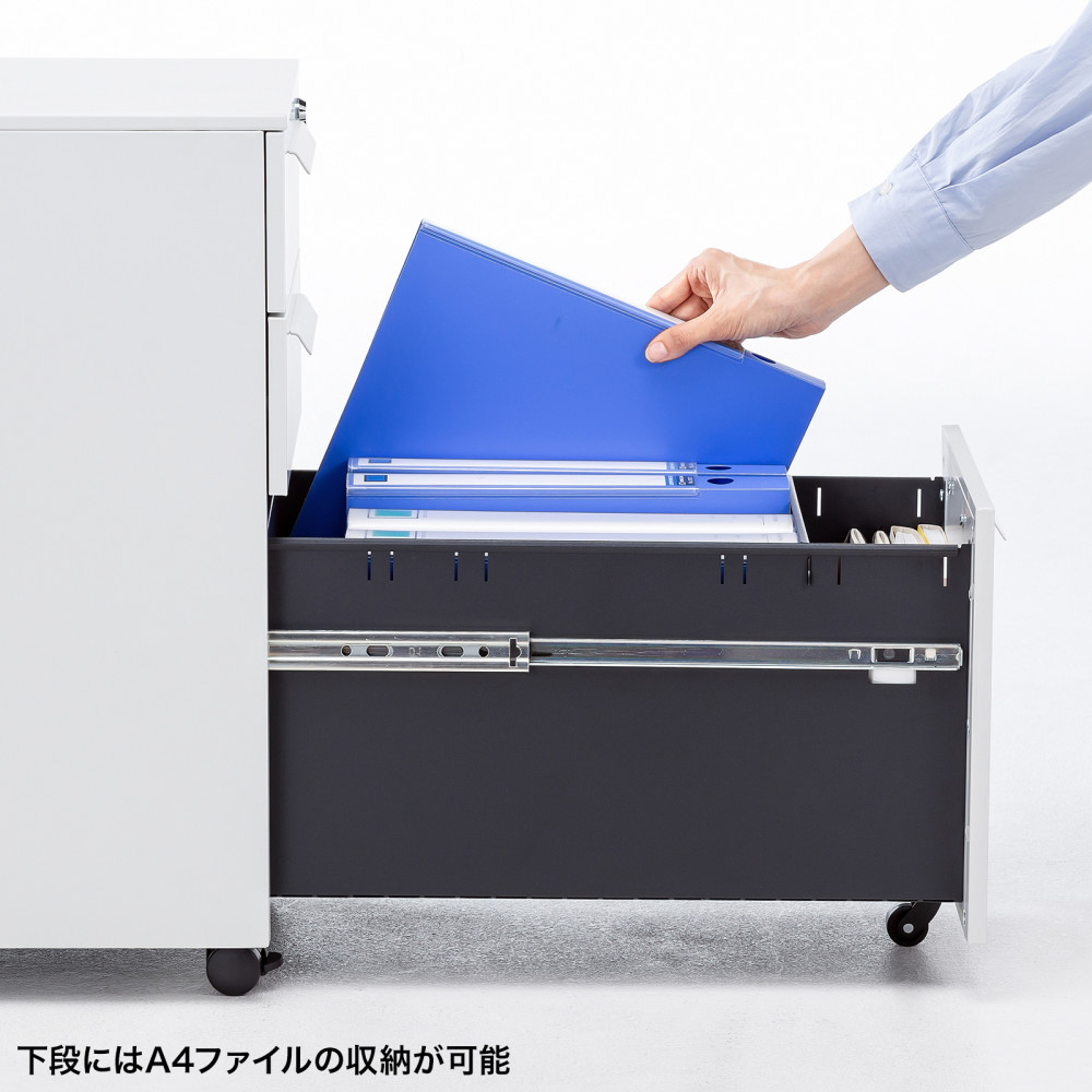 ■下段にはA4ファイルの収納が可能です。仕切り板が付属します。