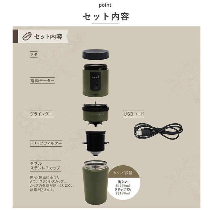 ■フタ、電動モーター、グラインダー、ドリップフィルター、ダブルステンレスカップ、USBコード