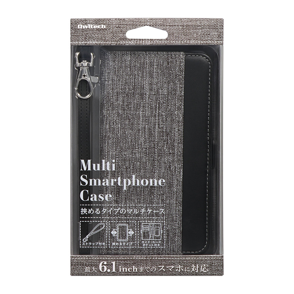 マルチケース スマートフォン用 最大6.1インチ対応 手帳型 スライド式ホルダー付き