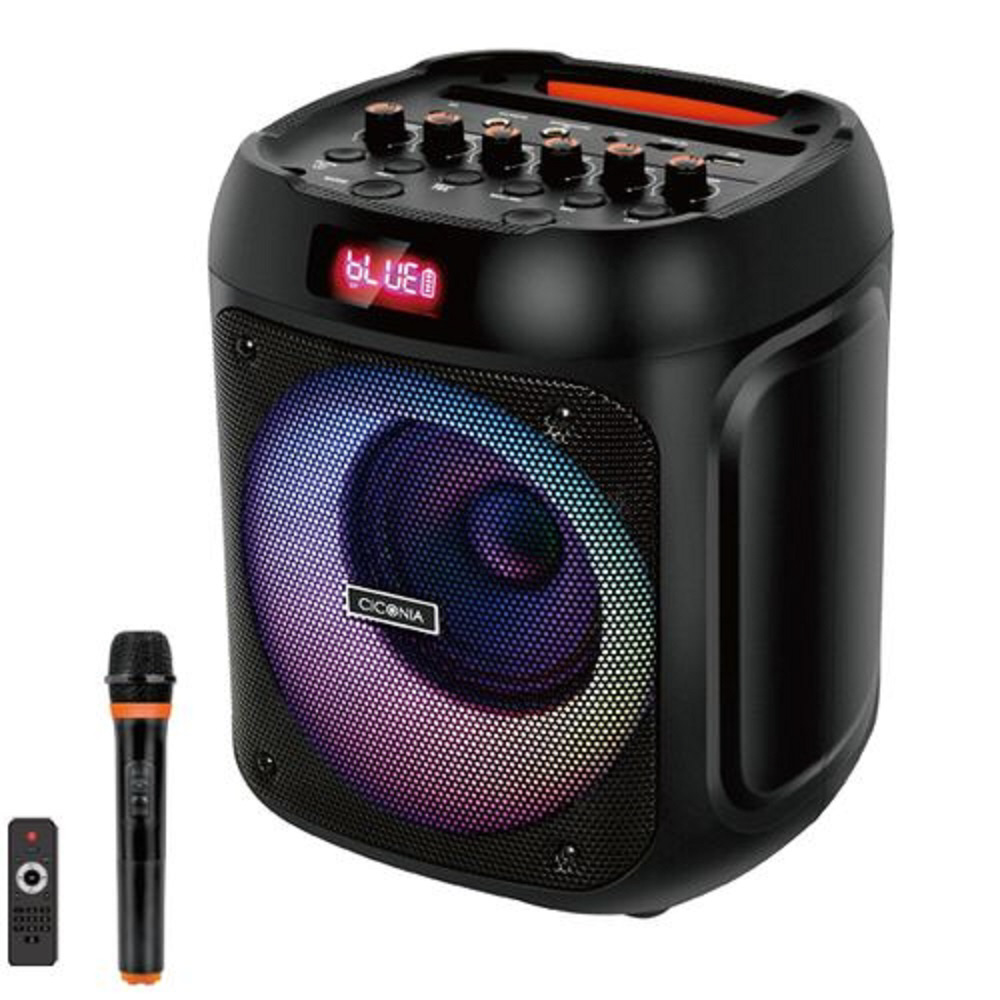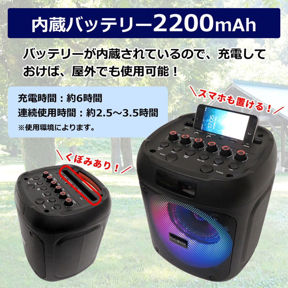ブルートゥーススピーカー LEDキューブスピーカー【ワイヤレスマイク1本付属】 ブラック CDR-080D [Bluetooth対応]