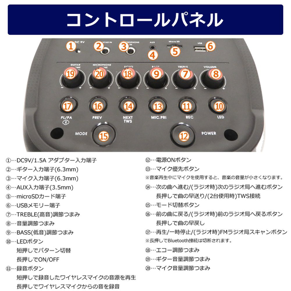 | 付属品 | ワイヤレスマイク1本・リモコン |