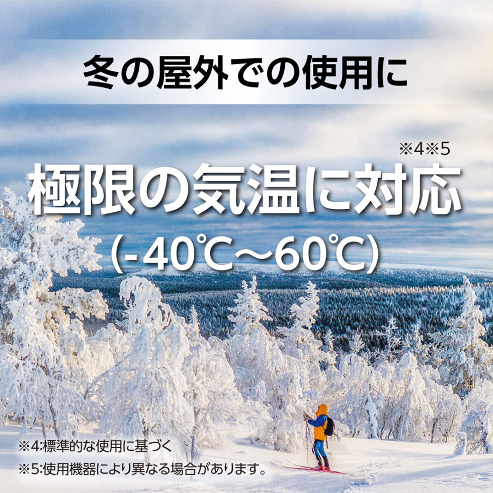 低温でも高温でもパワー発揮(−40℃〜60℃)。