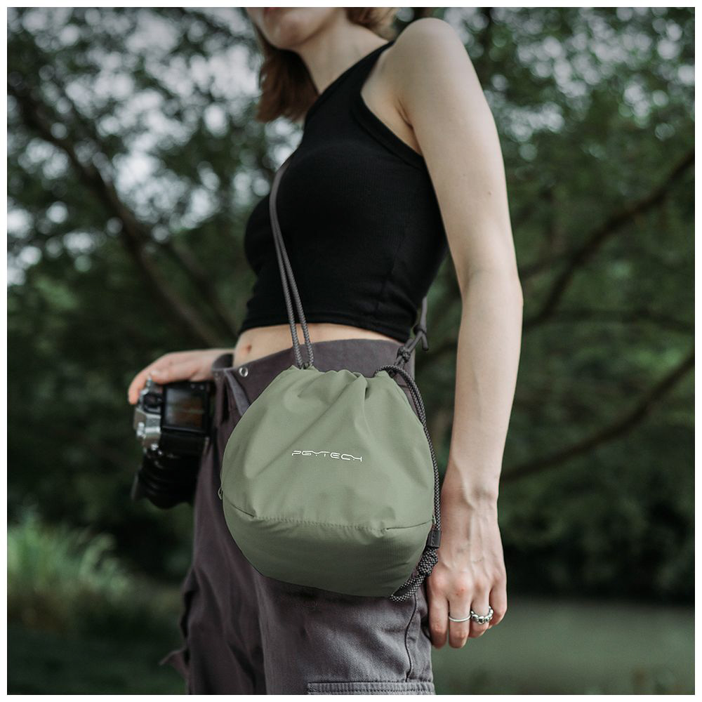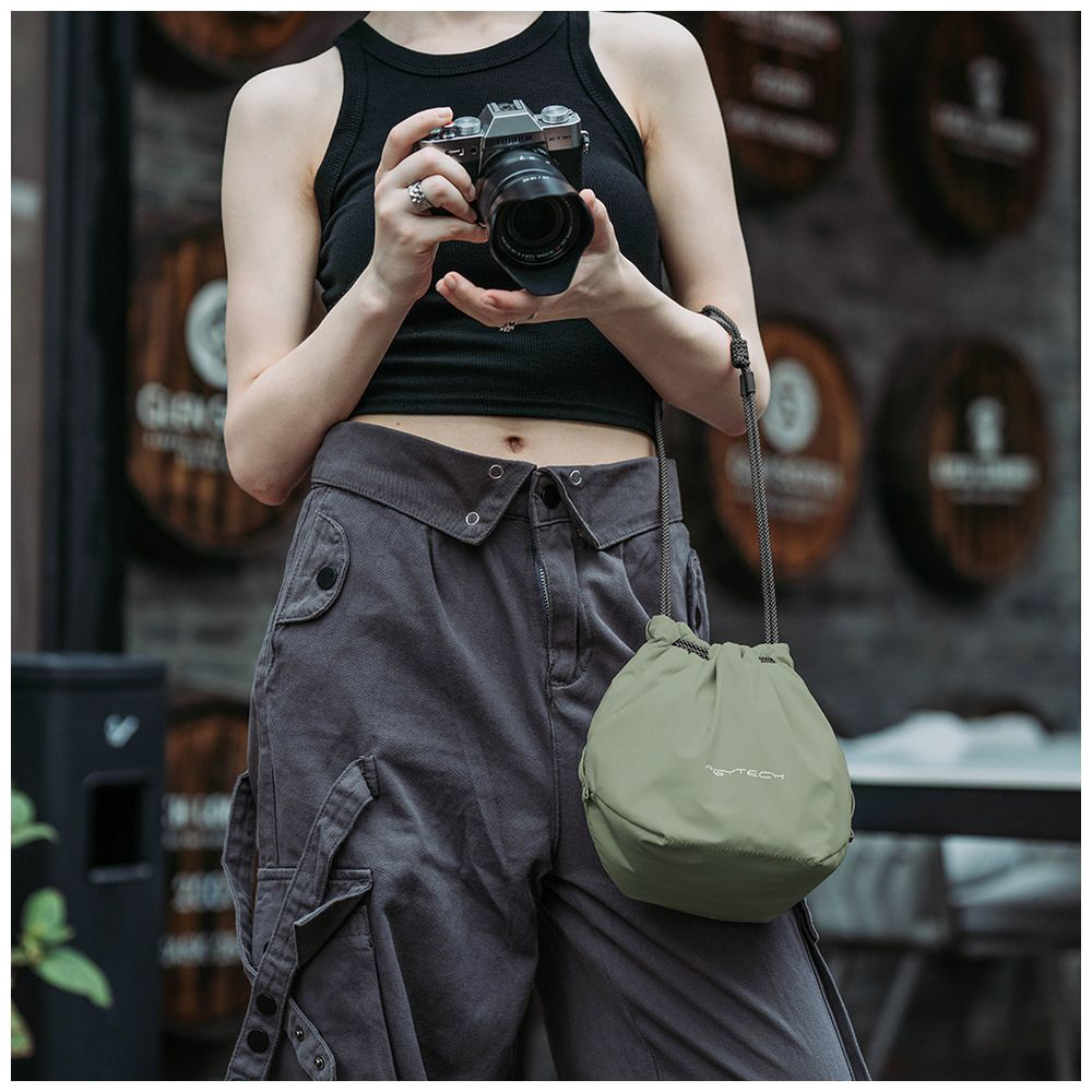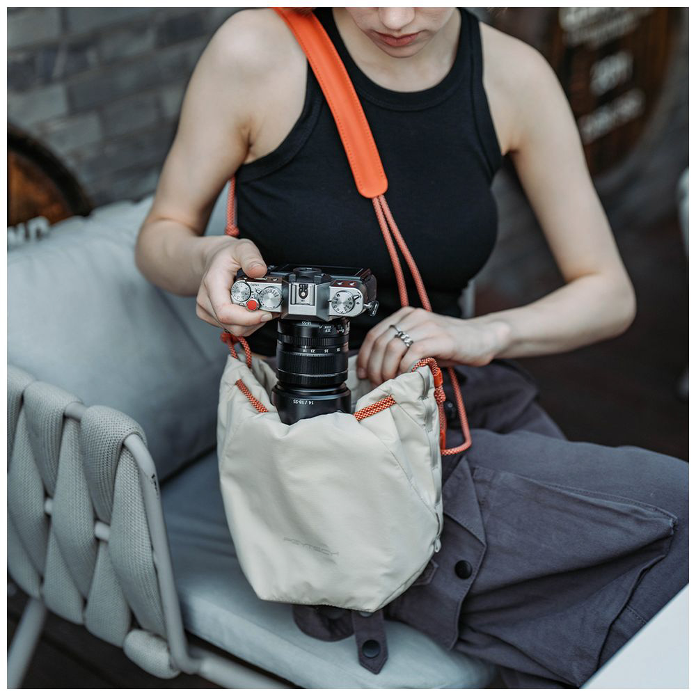 OneGo ドローストリングバッグは、1台のカメラとレンズで人生の一コマを撮影するアウトドア愛好家のため、考え抜いてデザインされた商品です。軽量で信頼性の高いナイロン生地で作られており、エレガントさと多用途性がシームレスに融合しています。