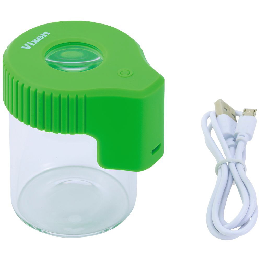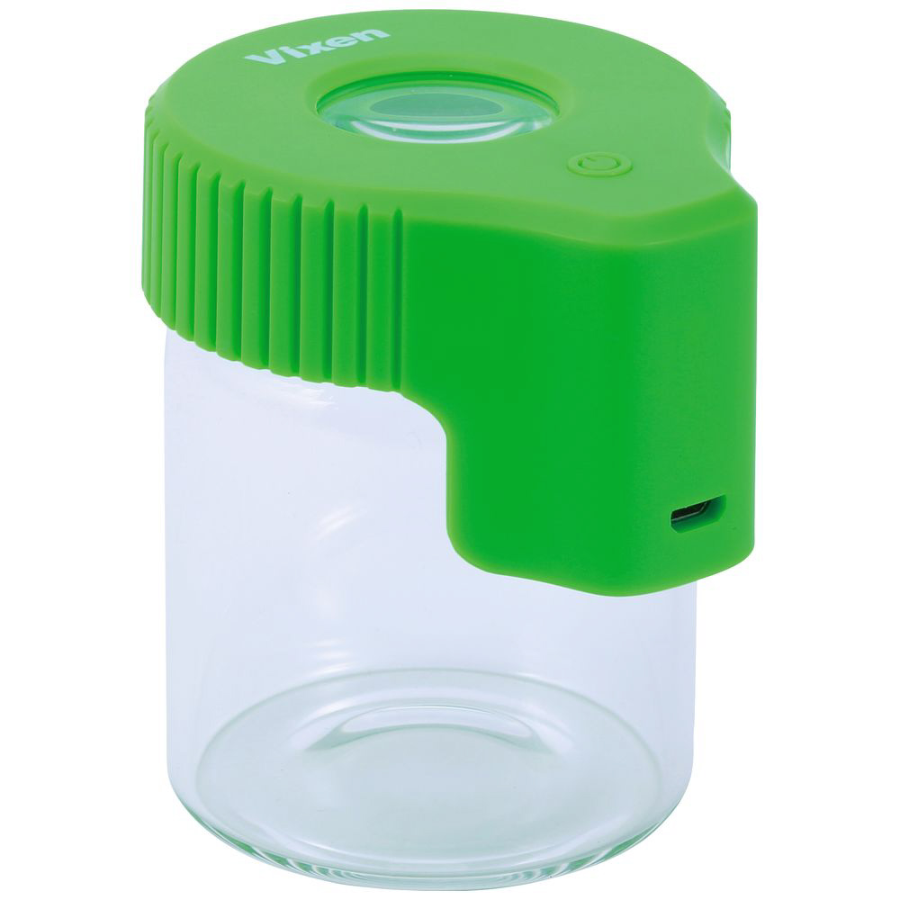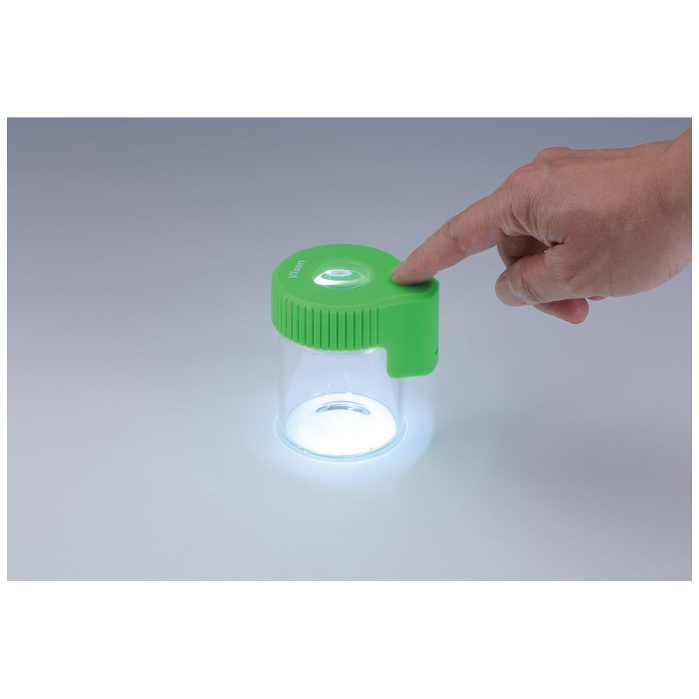 見たいものを透明のガラス製ボトルに入れて観察できるルーペです。高輝度LED照明を装備しているため、観察環境を選ばずどこでも高い視認性が得られます。