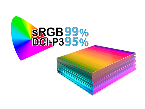 最大輝度400cd/m2の液晶パネルはsRGB 99%,DCI-P3 95%の広色域に対応し写真や動画編集などの作業にも最適です。