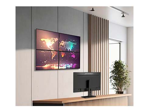 4辺フレームレスデザインを採用。浮かび上がるようにコンテンツを鮮やかに映し出します。4辺狭額縁パネルによる省スペース設計を行い、置く場所にも困らない使いやすいサイズを実現しました。また複数並べて使用するマルチディスプレイ構成にも最適です。